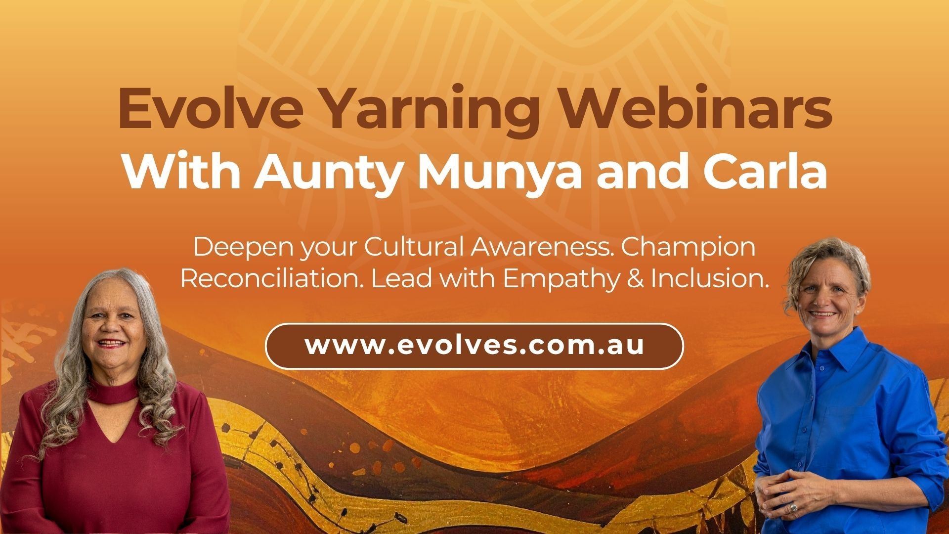 The Evolve Yarning Circle Webinars are hosted by Aboriginal Elder Aunty Munya Andrews and non-Indigenous Ally Carla Rogers.